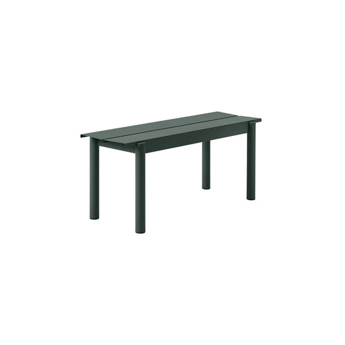 The Linear Steel Bench brings new perspectives to modern outdoor furniture through its straight lines alongside the folded edges, halfcircular intersecting legs and small spacing for easy removal of water. Kept visually clean for long-lasting aesthetics, the Linear Steel Bench finds its distinct character through subtle detailing and a simple expression, allowing for it to complement any outdoor setting. The Linear Steel Bench is designed in proportions that allow for it to slide easily under the matching Linear Steel Table.