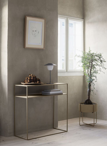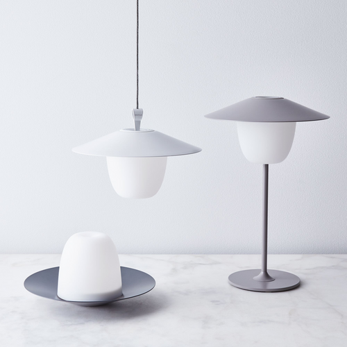 The Blomus ANI Lamp 3in1 Rechargeable LED is versatile, adaptable and brightly beautiful. The mobile LED lamp with matt colored powder coated aluminum can be used everywhere. The lamp can be used directly on the base, standing on the table as a traditional lamp, or hanging from the included rope. With a light touch of the lampshade, two brightness levels can be controlled or lamp can be switched off. For recharging, the lamp can be placed on the charging cradle and charged with the USB cable (both included). ANI is for outdoor or indoor use and is splash-proof. (Do not submerge in water). Run time is 8-16 hours on a charge, depending on brightness level used. Available in 4 colors: white, satellite (taupe), magnet (charcoal), and bark (rose/grey).