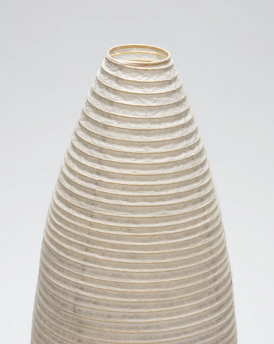 Japanese manufacturer Asano delicately handcrafts each lamp in the Gifu prefecture using high grade Washi paper and a spiral rib of bamboo. The process involves wrapping the bamboo around wooden forms and then glueing and applying each panel separately until the entire surface has been papered: a laborious and highly skilled endeavour.