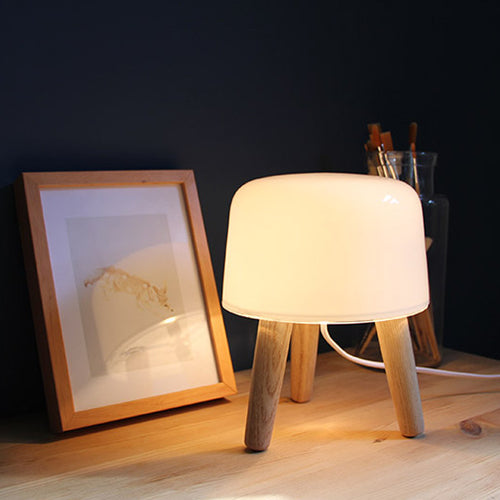Designed by Norm Architects (Kasper Rønn and Jonas Bjerre-Poulsen), the Milk lamp for AndTradition is a beautiful combination of solid handcraft and modern design. Milk is a table lamp which produces a soft light and can be placed in all corners of the home, adding a cozy atmosphere to any space. The innovative combination of a translucent glass shade on wooden legs, results in a lamp which echos Danish tradition of natural materials and clean lines.