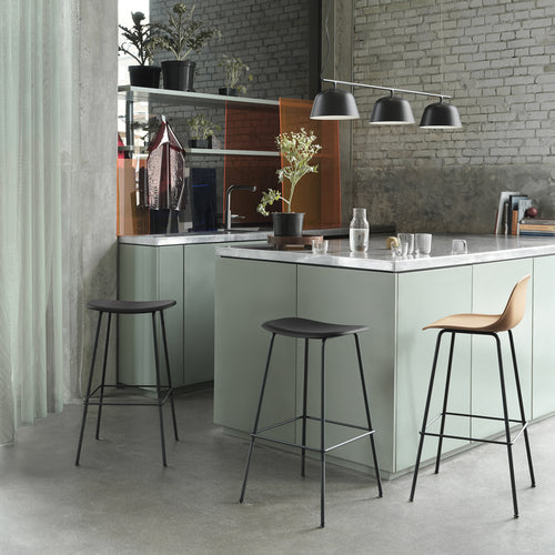 Muuto Fiber Stool with Backrest, tube base, 65cm, Ochre/Black $465.00