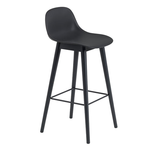 Muuto Fiber Stool, Black/Black Wood Base, With Backrest, 75 cm $815.00