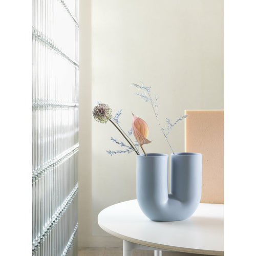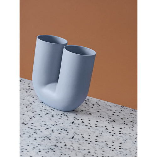 The Kink Vase brings a contemporary form to the archetypal flower vase through a combination of traditional craftsmanship and playful design. With its double opening, the Kink Vase adds a sculptural sentiment to the room, even when not in use. The design is made in porcelain that has been glazed on the inside for a refined touch.