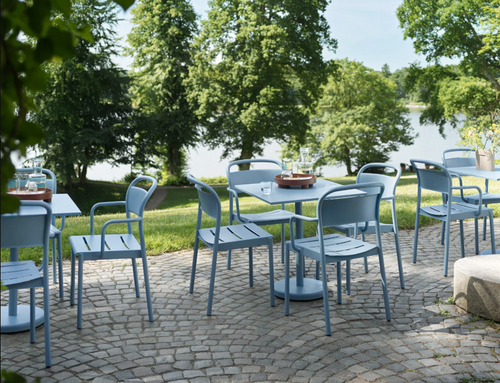 The Linear Café Table is characterized by its clean lines and elegant shapes, allowing for it to complement any outdoor setting. Use the design on its own or in company with the Linear Steel Armchair or Side Chair