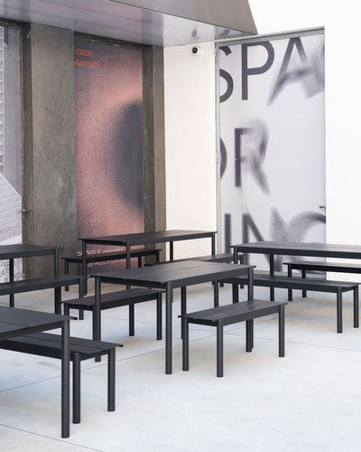 The Linear Steel Table brings new perspectives to modern outdoor furniture through its straight lines alongside the folded edges, halfcircular intersecting legs and small spacing for easy removal of water. Kept visually clean for long-lasting aesthetics, the Linear Steel Table finds it distinct character through subtle detailing and a simple expression, allowing for it to complement any outdoor setting. Pair the table with the Linear Steel Bench, designed in proportions that allow for it to slide easily under the table.