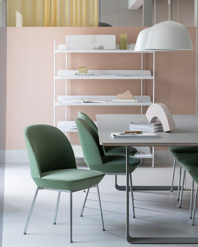 Combining modern, geometric lines with a light expression and comfortably soft seat, the Oslo Side Chair brings a refined perspective to the form through its playful lines and embracing back. The Oslo Side Chair adds an elegant touch to any space in a home, restaurant or workplace. Providing excellent back support, this chair doesn't just look good, it feels good too. Update your work from home office with the Oslo chair.