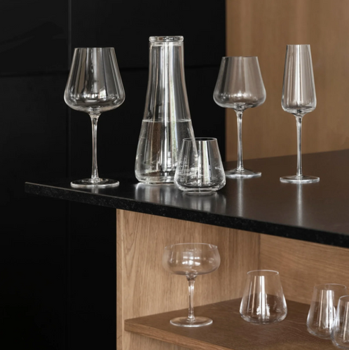 Complete your BELO sets with white wine glasses, red wine glasses, champagne flutes, champagne saucers, tumblers, water carafe and wine decanter.
