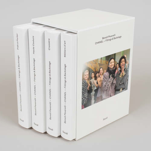 CHANEL – Fittings and Backstage is the long-awaited revised edition of the original sold-out book of 2018. Containing more than 2,000 photos and nearly 20 new collections, the publication comprises four volumes, one for each of Chanel’s collections: Haute Couture, Ready-to-Wear, Cruise, and Métiers d’Art which celebrates the savoir-faire of the numerous ateliers producing embroidery, beading, buttons and more—all by hand. Peverelli depicts the beauty and secrets of the backstage world, but also revealed are the fittings leading up to the show—exclusive meetings between Viard and the Chanel Studio at 31 Rue Cambon, where each model’s garment, accessories, make-up and hair are individually adjusted and perfected late through the night for the next morning’s show.