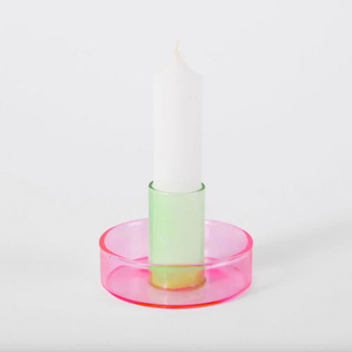 block Design Duo Tone Glass Candle Holder- Pink / Green $35.00