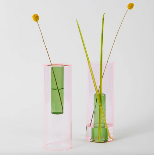 block Design Reversible Glass Vase - Large - Pink / Green $85.00
