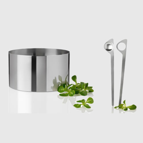 Serve with style. Attractive, slender salad servers designed by Arne Jacobsen. With their long, slender style these salad servers have an understated elegance.
