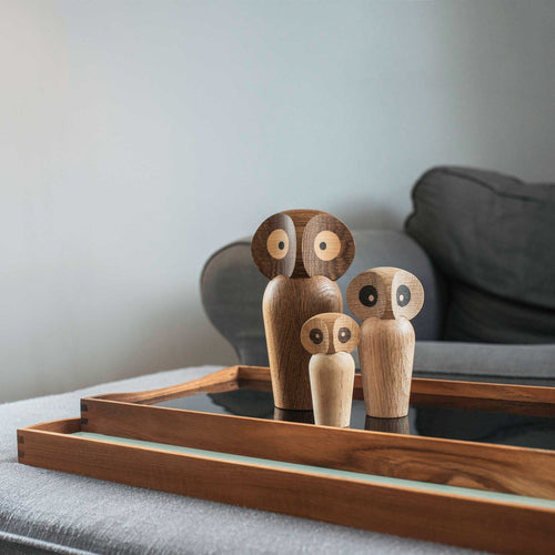 For years, Paul Anker Hansen made the Owl himself. Now, we continue to make it by hand and with the same precision. The body is made in oak wood, and its eyes are inserted with maple and wenge wood. The head has a magnet attached, so it can move seamlessly in multiple directions to create various expressions. It comes in three sizes: Mini, Small, and Large.
