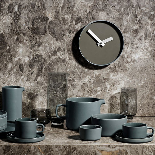 The Blomus RIM Wall Clock does without numbers and combines industrial design with the modern elegance of minimalist interiors. Less is more! The colored clock face is framed by a powder coated steel edge - the combining colors are complimentary and subtle. The clock hands underline the clean, tidy look. Available in two sizes 8 inch and 16 inch and in 3 different colors.