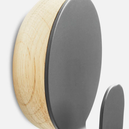 woud Haak Hook, Dark Grey Painted Metal and Solid Oak $129.00
