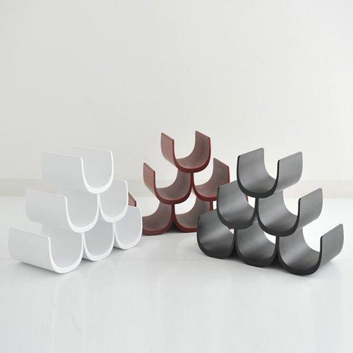 Alessi's Noè Wine Collection is named for the Bible's first wine aficionado. Noè (Italian for Noah) was not just famous for his ark, but also for his passion for wine. Perhaps his love of wine allowed him to live to the age of 950. But whatever wine does for our longevity, designer Giulio Lacchetti honours the nectar of the gods with each piece in this collection. The modular Wine Bottle Holder is designed to resemble an upside-down bunch of grapes. Each module holds one bottle and can be easily connected to two other modules by means of a groove located along the base.