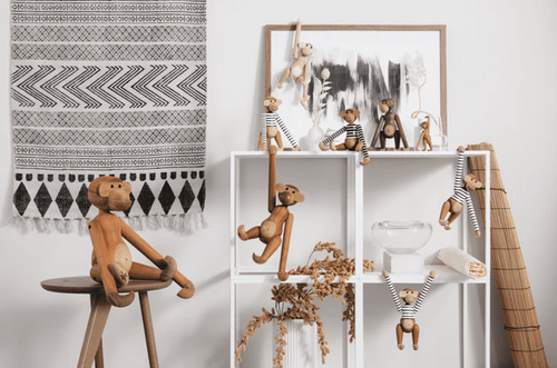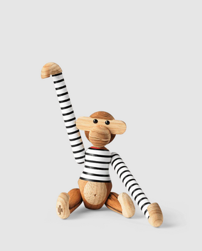 Kay Bojesen is synonymous with original Danish design. And the collaboration with Mads Nørgaard unites the love of durable and long-lasting products, while adding the playfulness and quirky quality that Kay Bojesen loved to add to his designs to spark the imagination and create original stories made of wood. The iconic Monkey in new clothes is a fun and unpretentious celebration of both design icons, where with a twinkle in the eye we come together to pay tribute to the humour and smiling lines with colours and stripes that go far back in Danish design history.