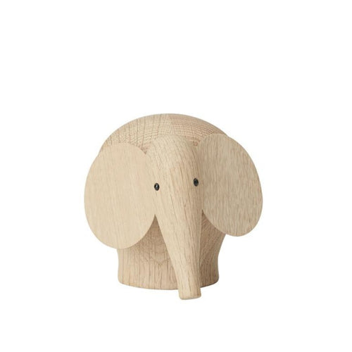 Nunu captures the nature of elephants in a simple and lovable sculpture made from solid oak. With the deep black eyes, Nunu has a vivid look. The expression of the elephant can change as the head can be tilted to either side giving Nunu a charming and wondering look on its face. On its own or together with its family, Nunu will bring enjoyment to any room it enters. Nunu builds upon an old tradition among Danish architects and designers to make expressive wooden sculptures.