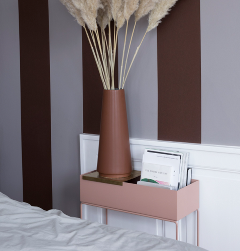 Our plant boxes can be used for decoration all over the house, as temporary storage in the hallway or as a divider to create cosy corners in larger rooms. They’re suitable for flowers, plants, books, toys and magazine – or maybe a little of each. Style them with delicate flowers in fine vases or try green plants in chunky clay pots and watch how the contrasts between the design and the added elements play. There’s an elegant and timeless aesthetic to the plant boxes from ferm LIVING. And the design has a striking and interesting contrast between the rectangular box on top and the thin metal legs. Plant boxes are available in several colours.