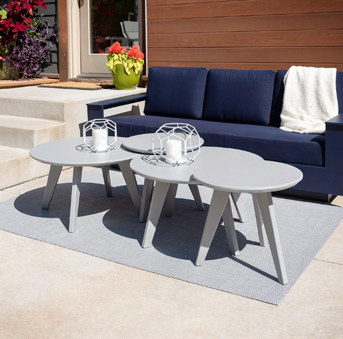 This square outdoor end table is a proud member of Loll’s Satellite Collection. The splayed legs make it feel a little bit Jetsons, and a little bit Palm Springs. A bit larger than her 18" sister, this modern side table measures 26 inches on each side of the tabletop. It’s perfect for outdoor entertaining. Plus, it’s made from 100 percent recycled plastic, which means you can feel good while resting your drink.