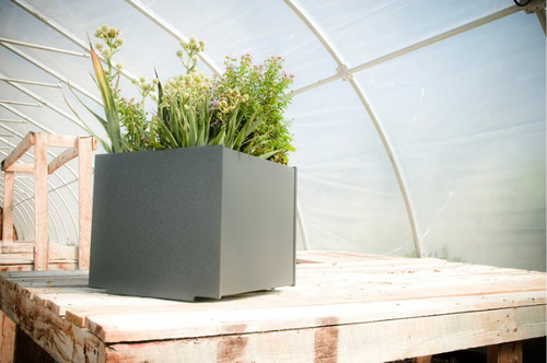 Made from recycled and recyclable plastic, Loll’s modern planters, including this square 22-gallon garden planter, are made to withstand the test of time and extreme weather. The joinery allows for a slow, seeping drainage, and holes can easily be drilled in the bottom, if desired. We ship these recycled plastic planters flat with simple, fun and intuitive assembly.