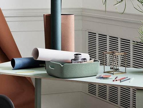 Designed by Mika Tolvanen for Muuto. The name “Restore” refers to the container’s polymer felt material, which is made from recycling PET bottles. We like that the Restore utilizes innovative and eco-friendly materials while still managing to look approachable and useable. These containers are great for magazines and toys and have been designed to be unobtrusive and friendly. The containers are strong enough that they hold their shape, but soft so they won’t scratch surfaces.