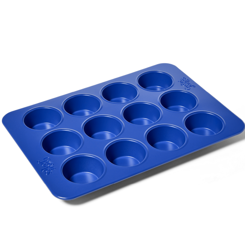 This nonstick, nontoxic pan fits 12 muffins, cupcakes, baby quiches, and more. Made from heavy-weight aluminized steel for greater durability and more-even baking, giving even heat distribution, a quick release, and easy cleanup.