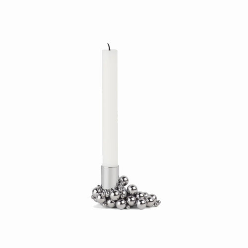 Consisting of a metal pipe, a magnetic and numerous steel balls, Molekyl candlelight is a unique candleholder that plays with materials, magnetisme, shapes and individuality all at the same time. The final design of Molekyl is unfinished, with the ultimate shape decided by you.
