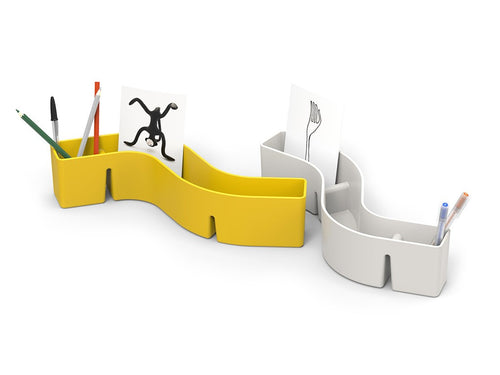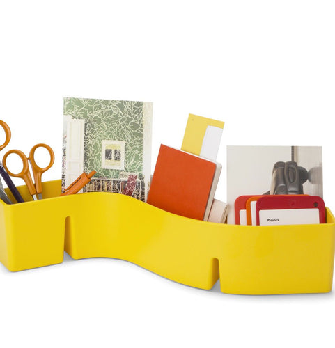 The serpentine shape of the S-Tidy organiser by Michel Charlot prevents it from tipping over, enabling safe storage of even taller objects such as tablets. S-Tidy is made of robust plastic and comes in a choice of colours.