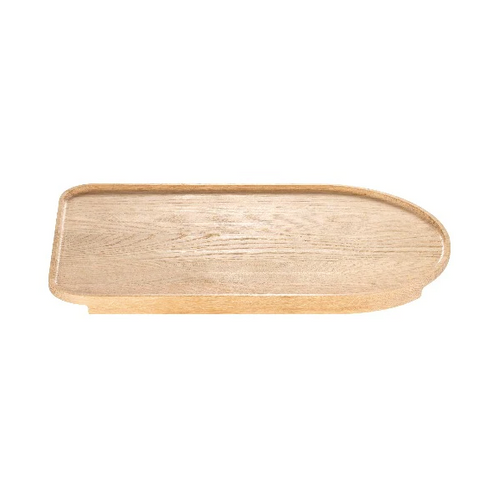 Blomus' oak cutting boards and trays are made of untreated oak. Blomus recommends the wood be treated with sunflower oil before using with foods to protect the wood against discoloring and prevent food odors and bacteria from attaching themselves to the surface. Tray can be rinsed with warm water, but Blomus does not recommend soaking.