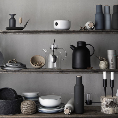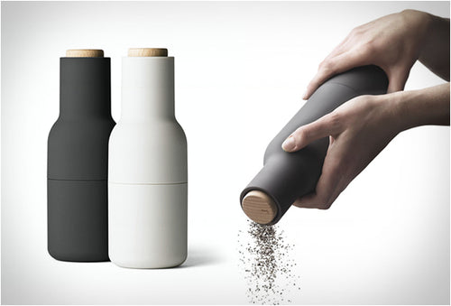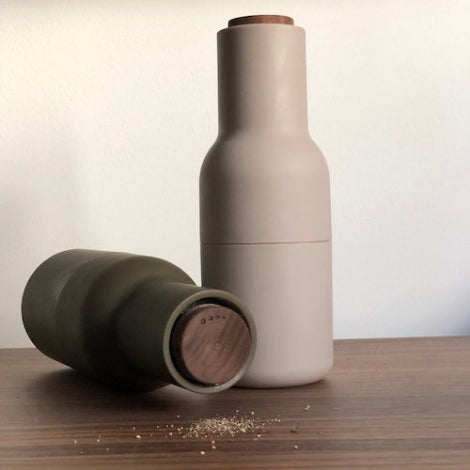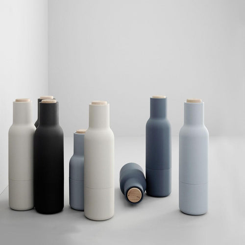 The form, shaped more like a bottle, cleverly tricks the user to encourage a more playful and experimental interaction with the product. The powerful ceramic mechanism makes the grinder easy to operate and per fect for a wide range of dried spices, seeds, salt and pepper. You simply open them, fill them with delicious ingredients and close them again. With the grinding mechanism located at the top of the set, it also ensures that you will keep your counter or kitchen table clean from salt and pepper flakes common with most other grinders. The Bottle Grinder collection is available in a range of beautiful, soft Scandinavian colours and is now extended with addition of brushed brass and bronzed brass versions