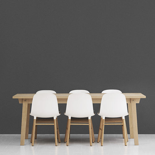 The Form Chairs are crafted combining a wood or steel frame with a molded plastic seat, while the table has oak legs and a linoleum covered table top. The different materials meet in an elegant way and help to accentuate the high quality craftsmanship, leaving the furniture with a clean and simple expression.