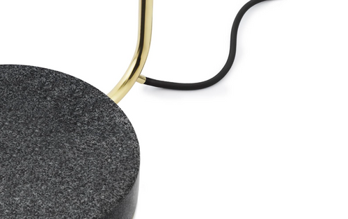 The Grant floor lamp stands tall and elegant with a slim, slightly tilted pose and a solid granite base. With the same functions as the Grant table lamp, a movable lampshade and dimmer, the Grant floor lamp is ideal as both a reading lamp and cozy lighting in dark corners.