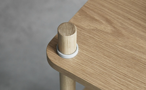Composed of just three different elements, the Jam bookcase is a cleverly and elegantly executed design. The defining element is a wedge, which allows the bookcase to be assembled without the use of screws or tools. The shelves are quite simply jammed onto the wedges and then gravity and friction take care of the rest.