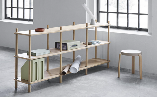 The Jam bookcase is available in various sizes and can be placed against a wall or used as a room divider. The shelves' softly rounded corners give the unit an inviting and friendly visual expression. With its versatile design, the bookcase works just as well in small apartments as it does in large offices, where its purity and materiality craft a calming and pleasant presence.