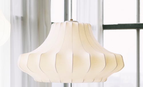 Many layers of threads make up the lampshade in the same way that a silkworm forms its cocoon.