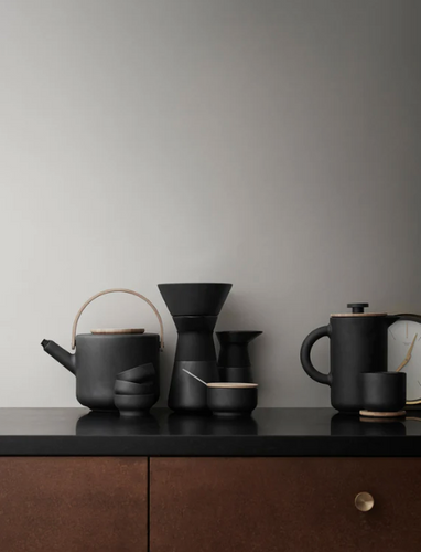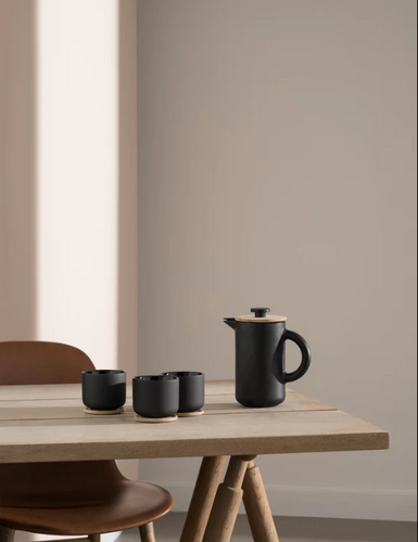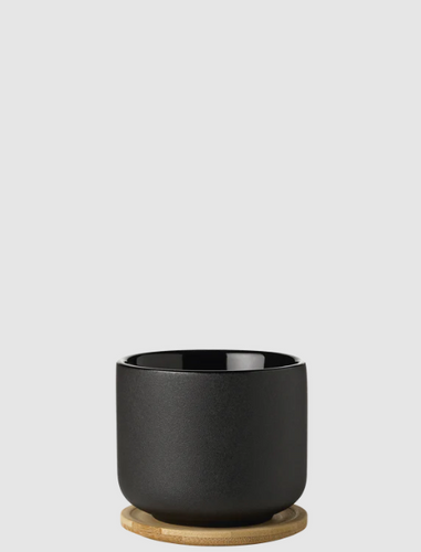 The Theo tea mug is made of blackish-brown stoneware, in the same style as the simple, Scandinavian, clean lines of the teapot. The mug has a bamboo coaster, which adds a warm, tranquil touch. Avoid cup rings on the table with this sustainable, Asian bamboo coaster.