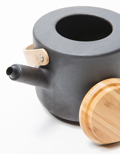 Scandinavia meets Japan with this design. Make time for tea with Theo. This stoneware teapot looks great with it's cast-iron finish. With the lid and handle made of bamboo this design is inspired by Japanese tea culture. The simplicity and functionality of this design is both practical and pleasing to the eye.